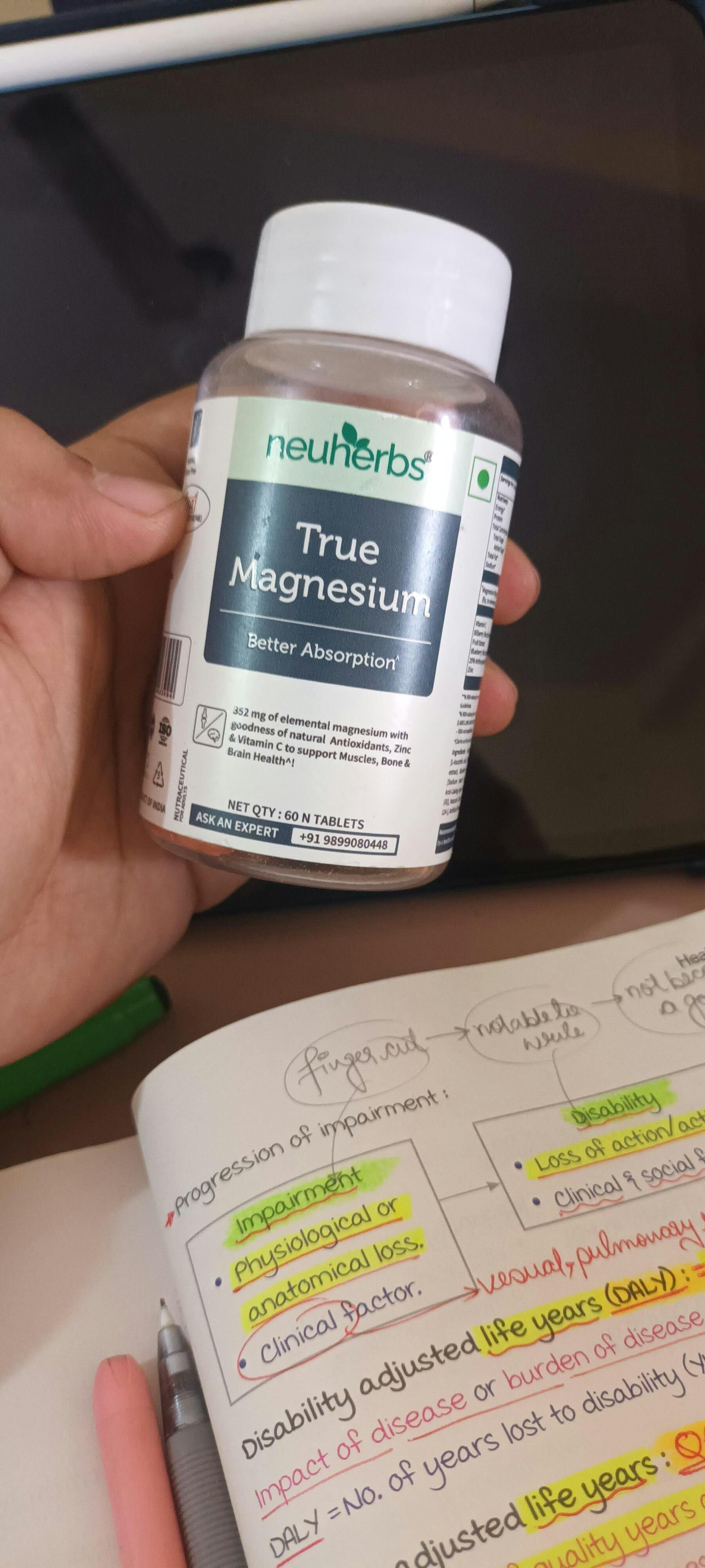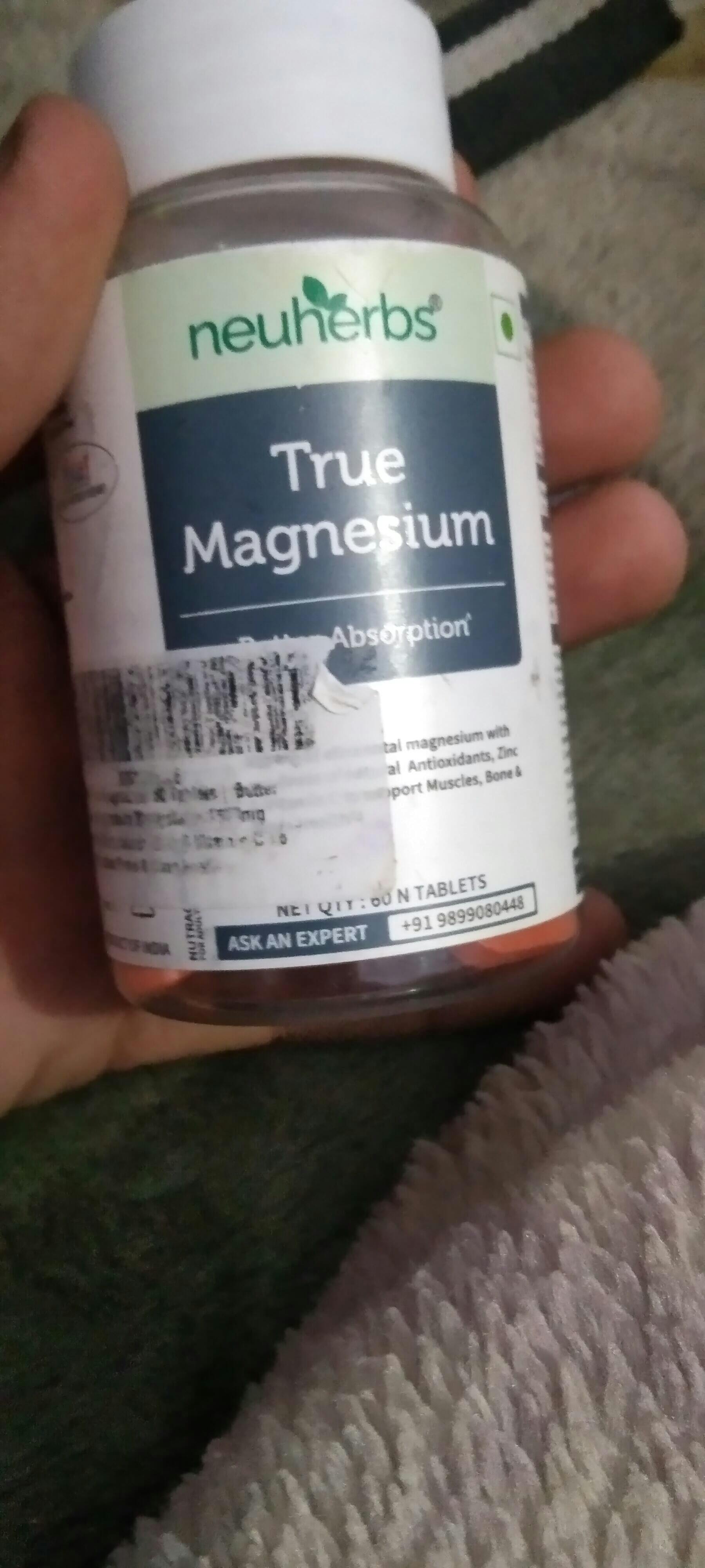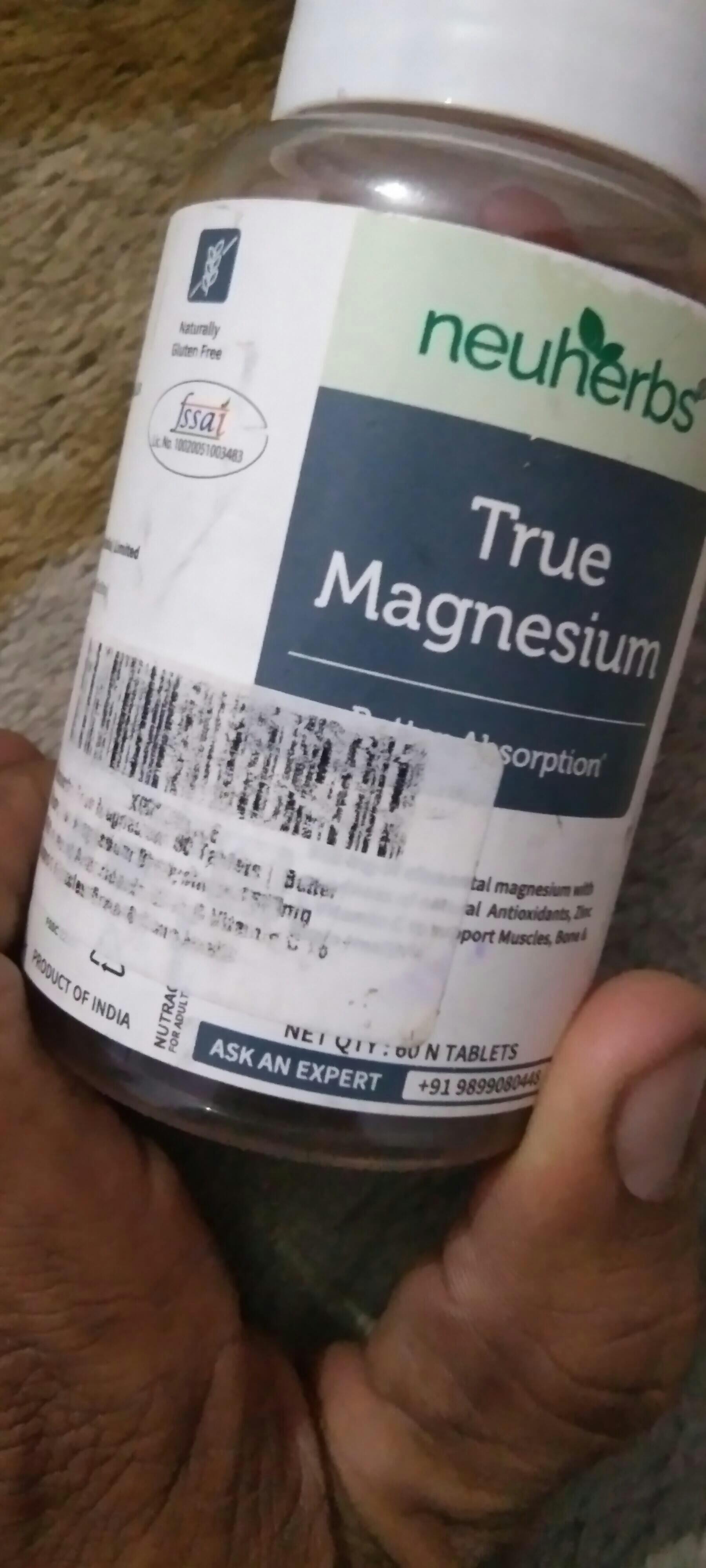 Less...neuherbs True Magnesium contains 1600 mg of magnesium, which offers 352mg of elemental Magnesium- which helps manage muscle & brain health.
